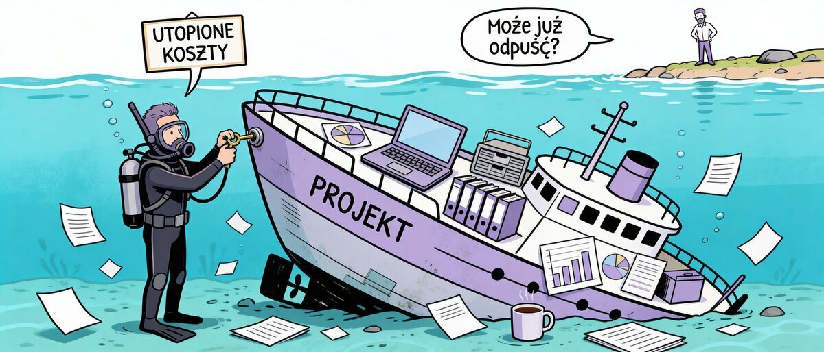 Gratulacje. Właśnie padłeś ofiarą jednego z najdroższych błędów poznawczych w historii biznesu. Poznaj Błąd Utopionych Kosztów (Sunk Cost Fallacy) – wirusa w oprogramowaniu Twojego mózgu, który każe Ci reanimować biznesowego trupa, zamiast zająć się zarabianiem prawdziwych pieniędzy.